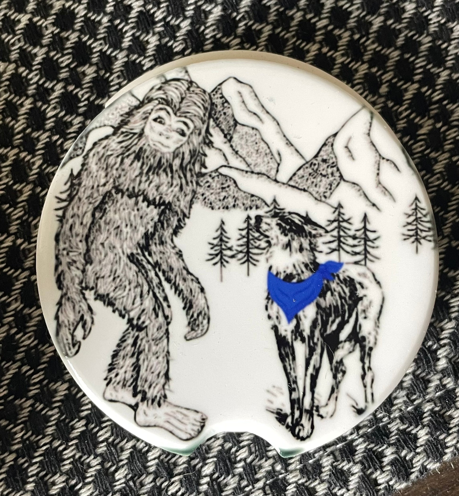 Our bandanas are a tie on. We reccomend sizing up for floofy dogs!